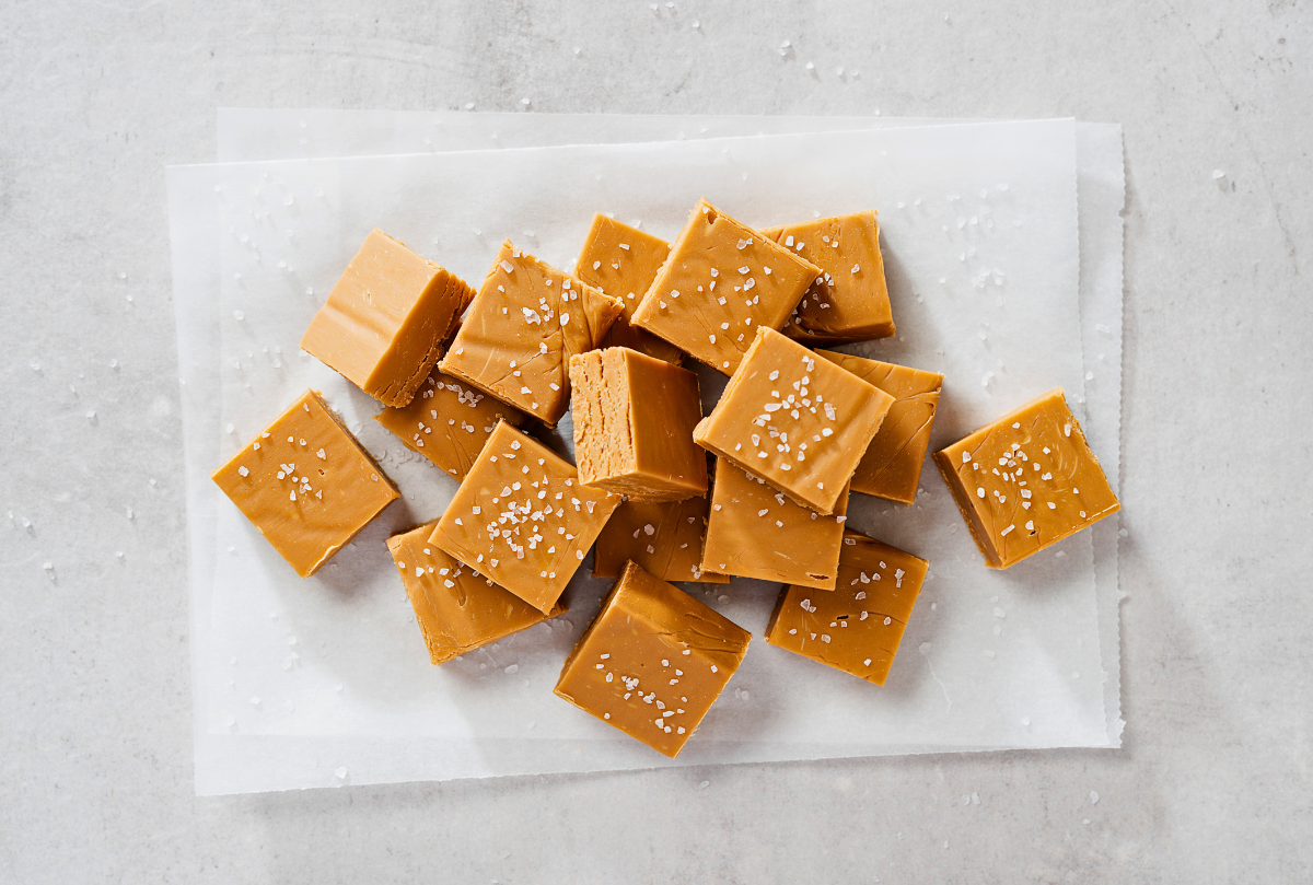 5. Pour the fudge mixture into a loaf pan, lined with parchment paper and smooth it out; top it with flaked sea salt